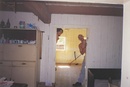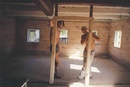Téhle fotce čas opravdu nijak neublížil. Je tuším z roku 1998 nebo 99, to byl Dědov ještě Dědovem a ne tolik Javorem jako dnes. A co je na fotce zajímavého krom dvou mládenců? Vlevo za dvojicí postav je skříň (dnes na půdě) a za skříní příčka. Velká světnice v Dědově byla rozdělena na malou kuchyňku a ložnici. To dnes už není, v roce 2000 jsme chalupu vrátili k původnímu stavu. Zmizel také květinový váleček z dob reálného socialismu. Vrátit k původnímu stavu postavy na fotkách se bohužel už asi nepovede.