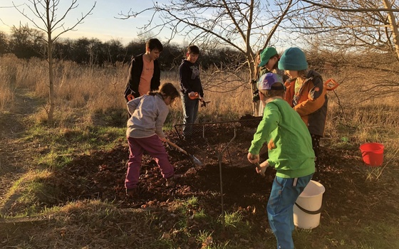 TOM 20210 - Čejkovice vysázel jarní cibulky do trávníku u sochy T.G. Masaryka. TOM Robinsoni si vybudoval u klubovny vyvýšený záhon a zasadil tam svazenku, měsíček lékařský a vysází i další květiny, které budou kvést postupně od jara až do podzimu.
